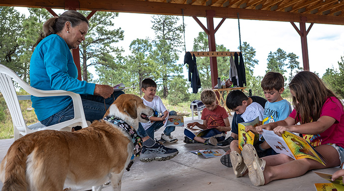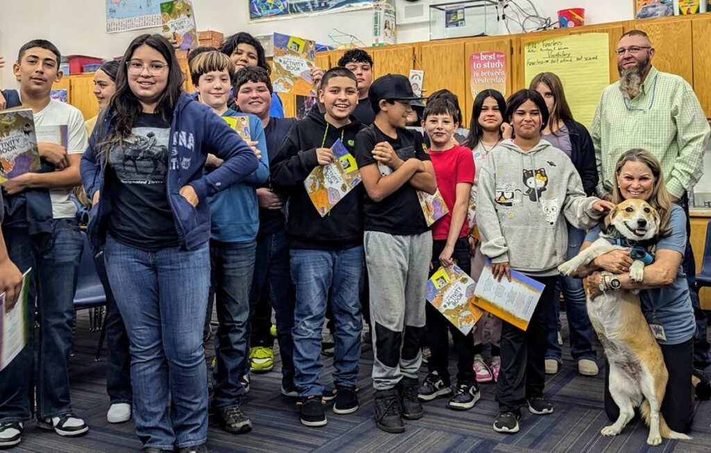 Every student alternates reading at their level to a dog. Students learn how to properly communicate, care for, and protect homeless animals.